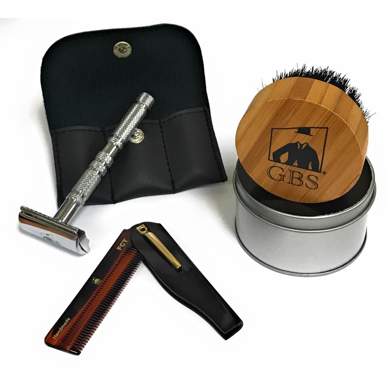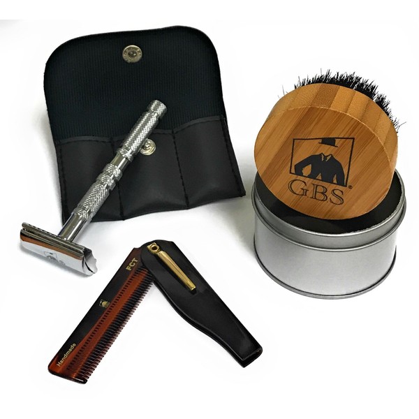 G.B.S Men's Grooming Set - Double Edge Safety Razor, Includes Razor 10 DE Razor Blades & Case, Convenient, Comfortable