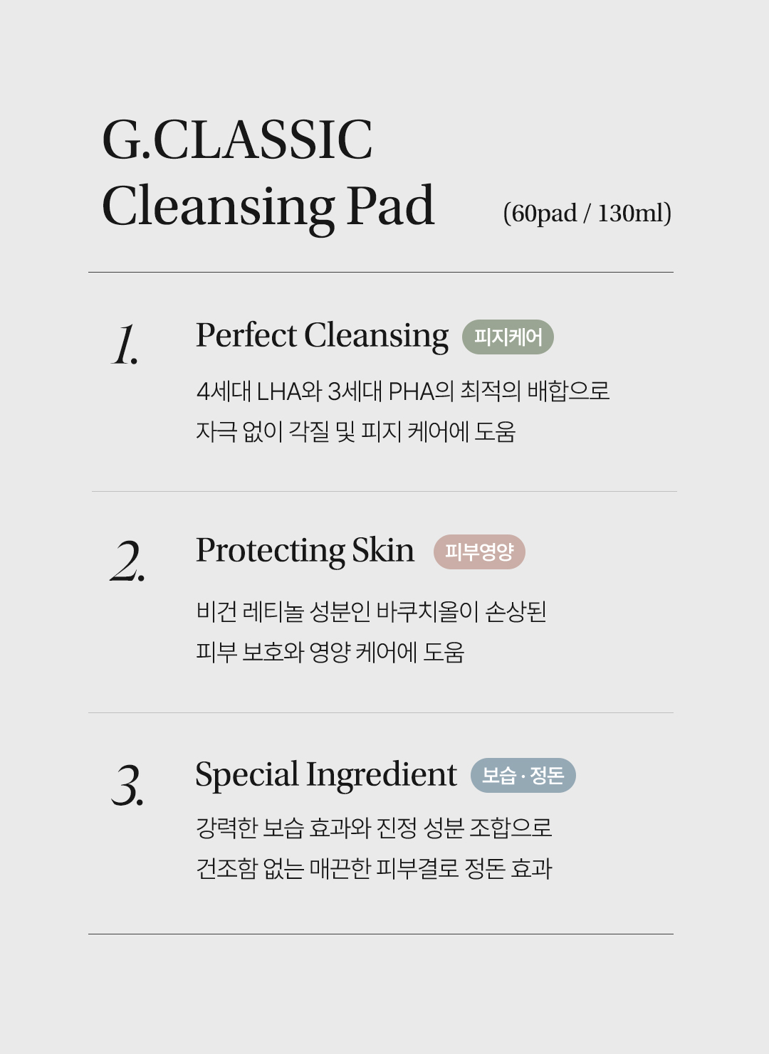 G-Classic Cleansing Pad 130ml, 60pad / 지클래식 클렌징 패드 130ml, 60pad