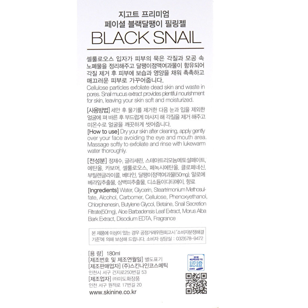 지코트 각질케어 페이셜 블랙달팽이 필링젤 180ml
