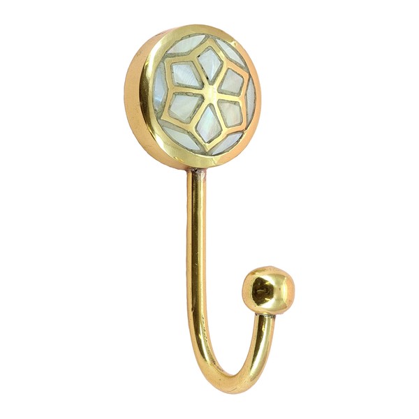 G Decor Mother of Pearl Patterned Gold Brass Coat Hook Wall Organizer Coat Hook (Flower)