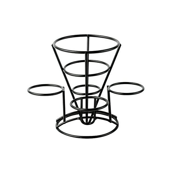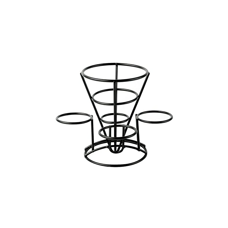 G.E.T. Enterprises 4-362803 French Fry Cone Holder with Handle and Three Ramekin Holders, Iron, Black