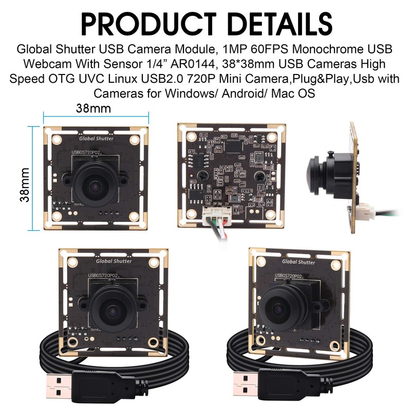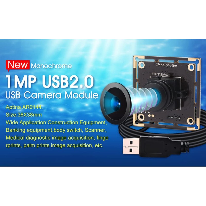 - 【High speed USB 2.0 interface Camera Module:】High quality Aptina AR0144 Sensor for high quality image,OTG support,Free driver,plug and play.Equipped with 1 Meter Usb Cable.Shutter Type : Global shutter,Monochrome, black and white.