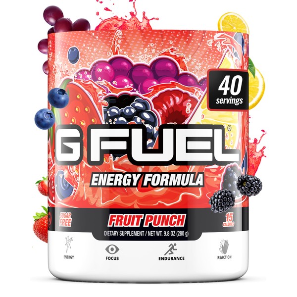 G Fuel Fruit Punch Energy Drink Powder, Pre Workout Caffeine Mix for Gaming, Sugar Free Focus Amino, Vitamin + Antioxidants, 9.9oz (Fruit Punch, 40 Servings)