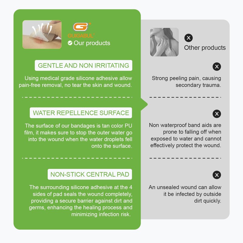 - Reliable Quality products: More than 20 years of experiences on the research and development of wound care products, as well as qualification certificates including but not limited to FDA, ISO13485, CE and etc. G+ GUIGABUL aim to continue providing you with first aid solutions to help you heal and feel better in daily life.