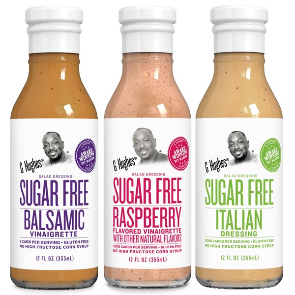 G Hughes Sugar Free, Salad Dressing Bundle - Gluten Free Salad Dressings, Low Carb Healthy Dressing - 12 Oz Bottles (3-Pack Balsamic, Raspberry, & Italian)