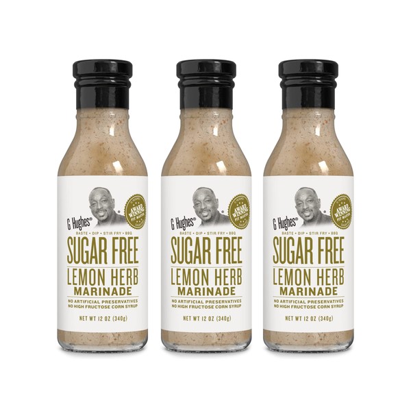G Hughes Sugar Free, Lemon Herb Marinade - Sugar Free Marinades, Gluten Free Lemon Pepper Seasoning, Keto Friendly Seasonings, Low Carb Marinades, Sugar Free BBQ Sauce, Keto BBQ Sauce- 12 Oz (3-Pack)