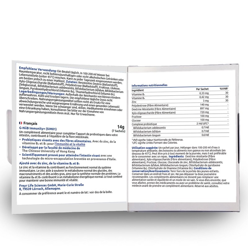 G-NiiB Immunity+ (SIM01) | Digestive Probiotics and Prebiotics with Zinc, Vitamin B6 and B1 for Immunity and Energy | 7 sachets