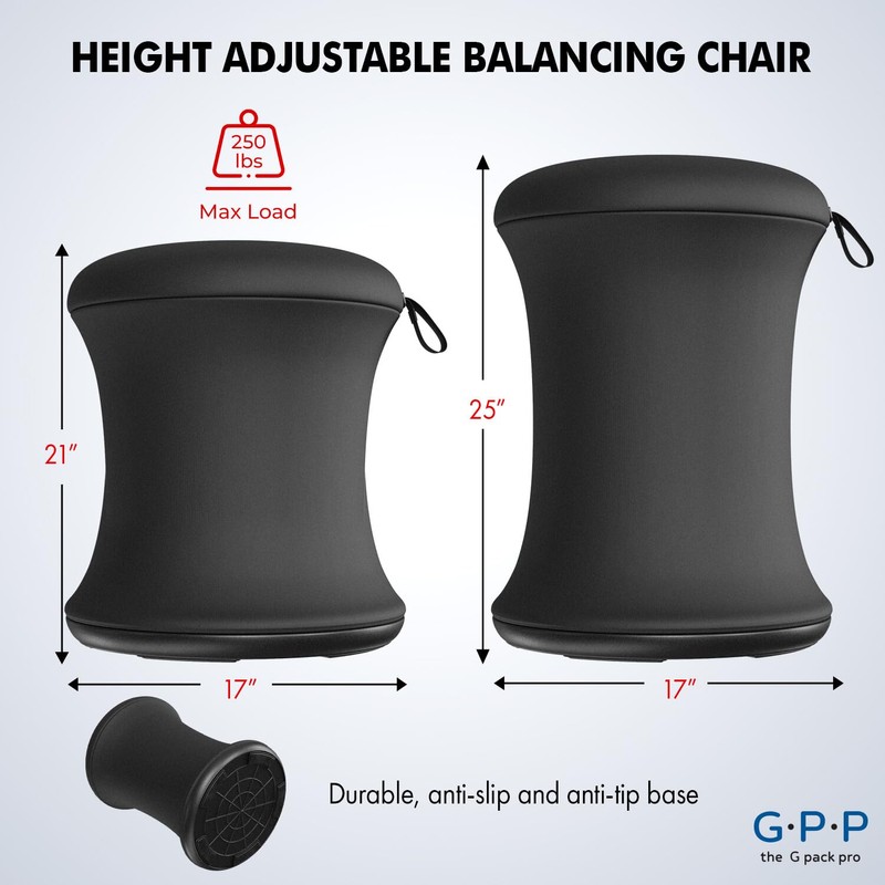 G-PACK PRO - Wobble Stool - Improves Focus Posture - Movable Height Adjustable Stool – Active Sitting Balance - Swivel and Non-Slip Base - Ergonomic Desk Stool for Office, Home (Black)
