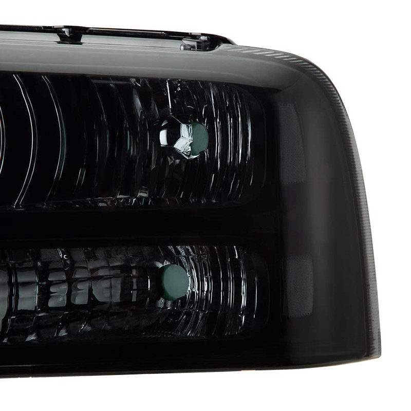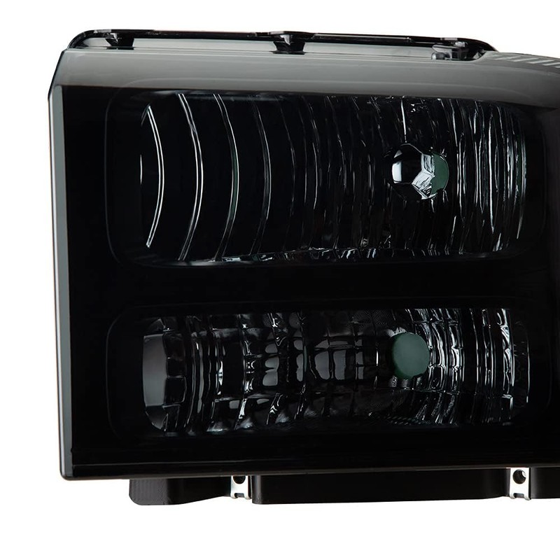 G-PLUS Headlights Assembly, Compatible with 2005 2006 2007 Ford F250 F350 Super Duty 2005-2007 Headlamp Driver and Passenger Side, Smoky lens Black Housing Clear Reflector