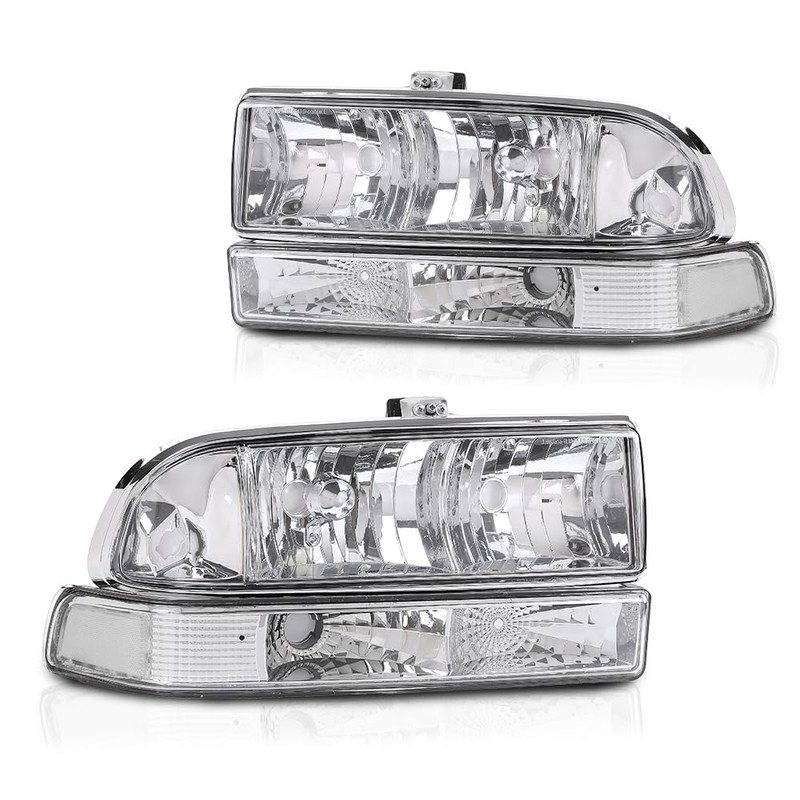G-PLUS Headlights Assembly,Compatible with Chevy S10 Blazer 1998 1999 2000 2001 2002 2003 2004 Bumper Headlamp,Clear Lens Chrome Housing Clear Reflector 16526217 16526218 15098267 15098268