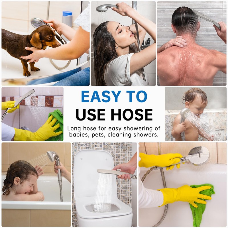 - 70 INCHES HOSE: It can be stretched from 70 inches to 75 inches, the long hose makes your shower more convenient.The long hose allows you to conveniently shower babies, pets, and easily clean all corners of the shower.