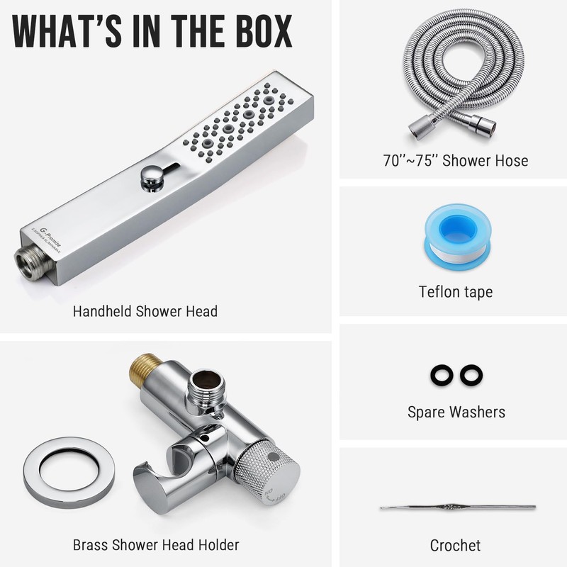 G-Promise All Metal Handheld Shower Set with 3-Function Showerwand, included Handheld Holder to Control on/off Switch and 70 Inch Tangle-Free Stainless Steel Hose