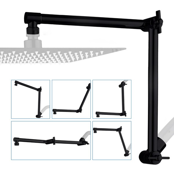 G-Promise 16 Inch Shower Head Extension Arm, Solid Brass Height & Angle Adjustable Extender, Rise or Lower Rainfall and Fixed Shower Head (Matte Black)