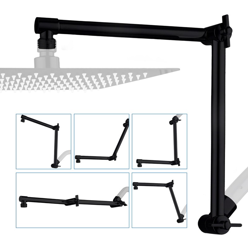 - ►16 INCH SHOWER EXTENSION ARM: Keeps the shower head away from the wall. You can adjust the height, distance and angle with two knobs to meet your specific needs. The free spinning locking collar allows you to tighten the extender in a correct position.