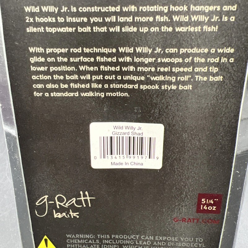 G-Ratt Baits - Wild Willy Jr. 5.25" & 1.4 oz. ~ Topwater Lure - Gizzard Shad