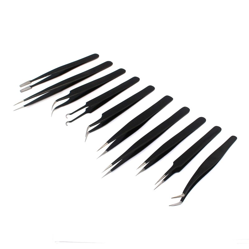- G.S Precision Tweezers Set, ESD Tweezers Set Anti-Static Stainless Steel Tweezers Non-Magnetic Tweezers Set Blackhead Remover with Storage Bag for Jewelry, Craft, Electronics, Laboratory Work 10 PCS