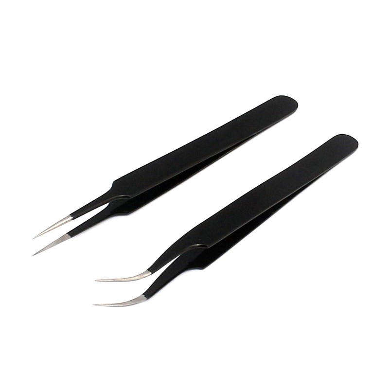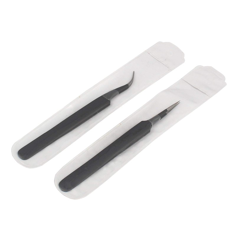 - G.S Professional Set of 2 Black Anti Static Tweezers Including Straight & Curved for Make up Eyelashes Extensions, Nail Art Rhinestones/Crystals Decorations and Handicrafts/Crafting Best Quality