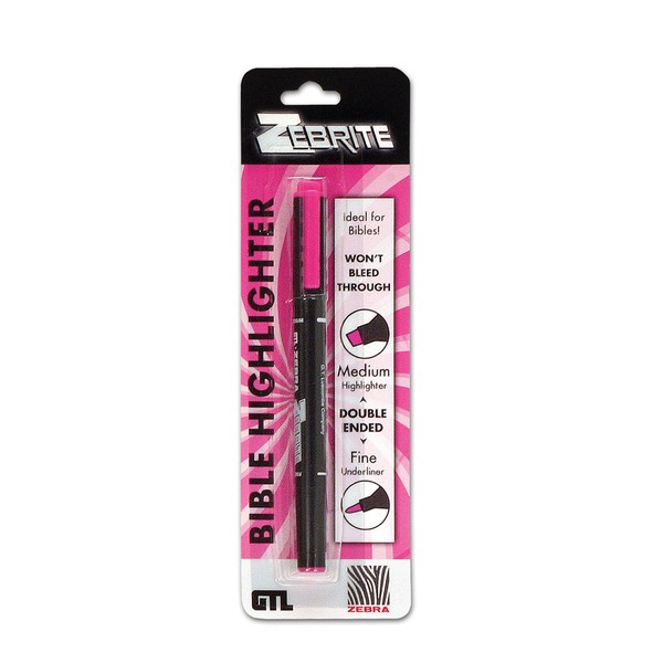 G.T. Luscombe Company, Inc. Zebrite Double Ended Bible Highlighter Set | No Bleed Pigmented Ink | No Fading or Smearing | Double Ended for Highlighting & Underlining |Pink Ink