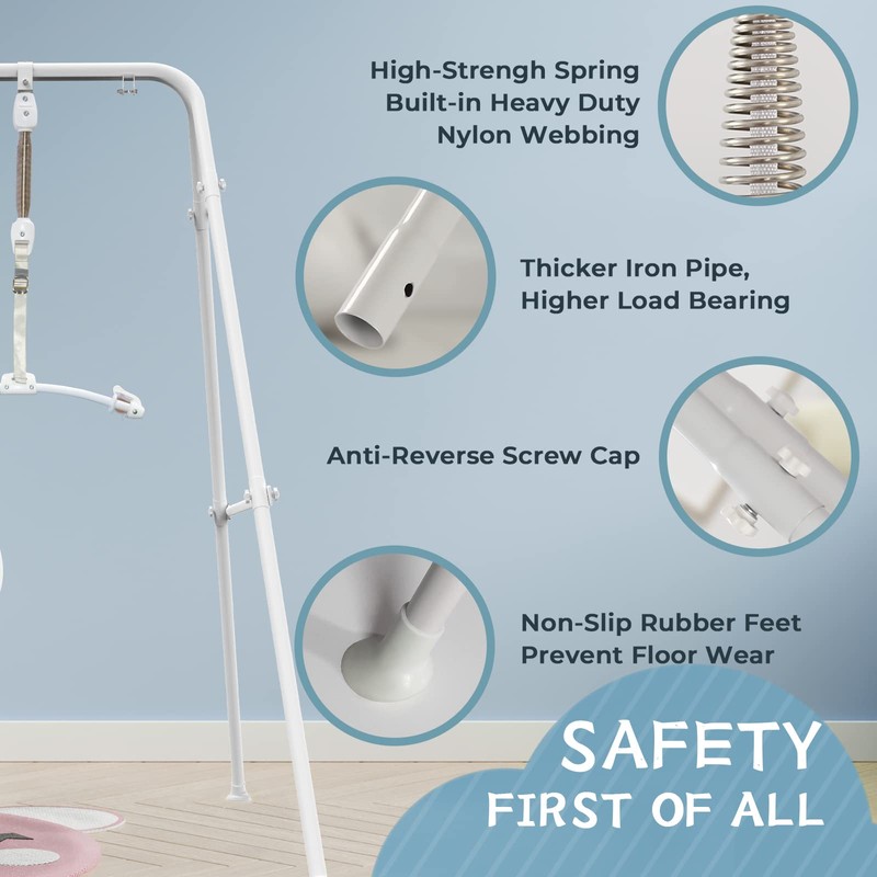 - 【Indoor & Outdoor】The standing jumper perfect for homes without door frames and allows the baby exerciser to be used indoor or outdoor.