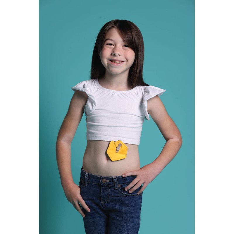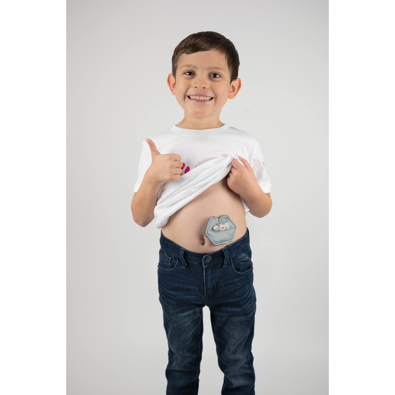 - Gentle velcro closure sits beneath the g-tube and is easy to open and close