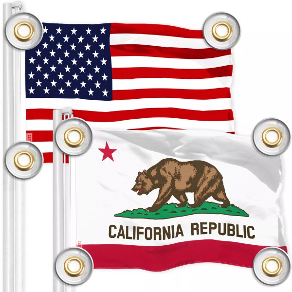 G128 Combo American & California Flag 3x5 Ft Both Printed 150D Poly 4 Corner Grommets