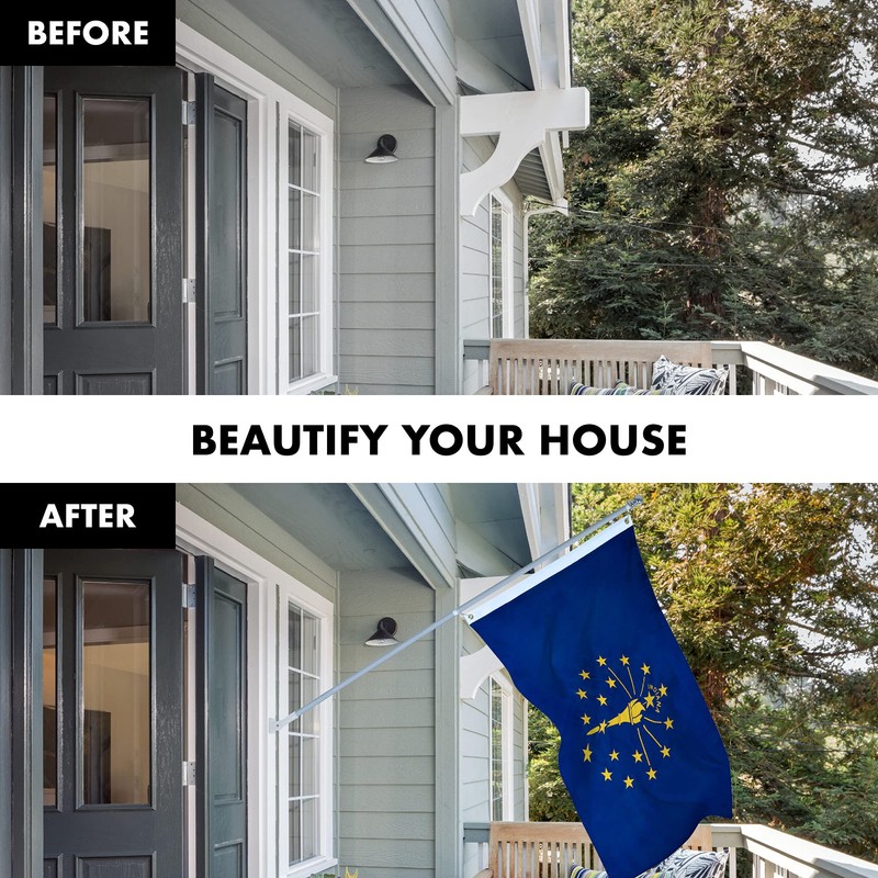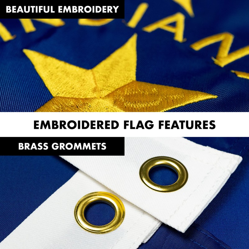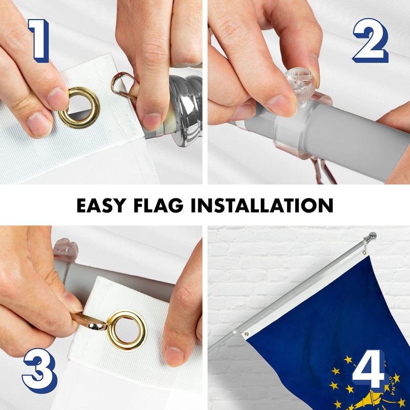 - DELUXE PACKAGE: G128 is including a 2.5x4 Ft embroidered Indiana flag with brass grommets for this deluxe flag and flagpole package!