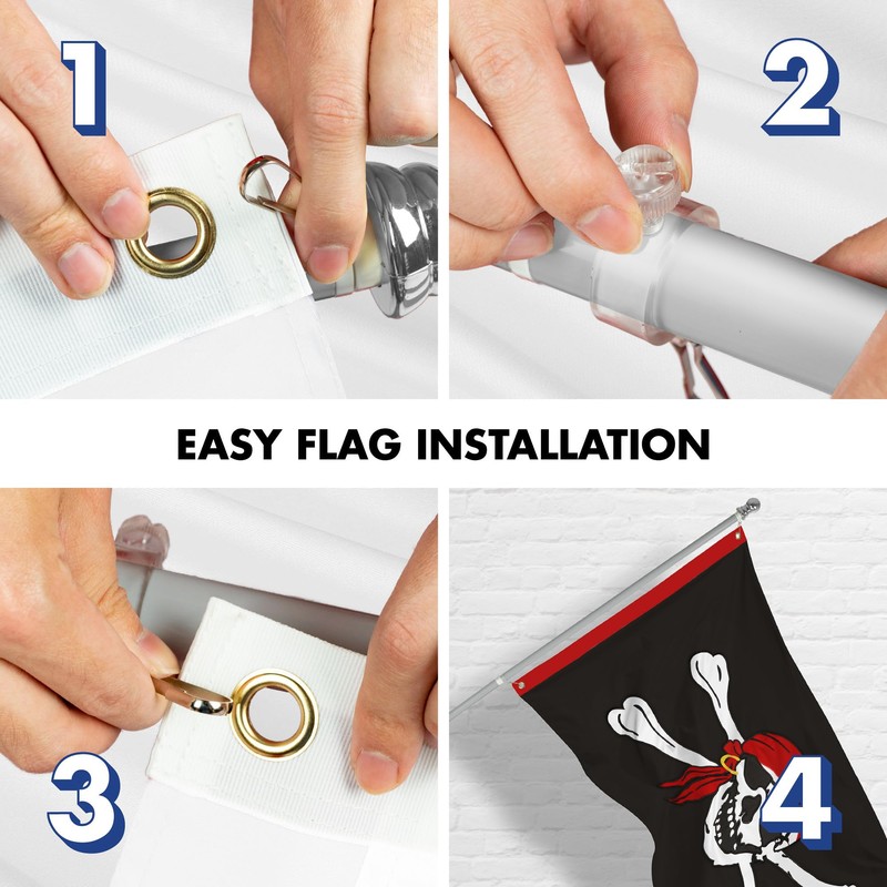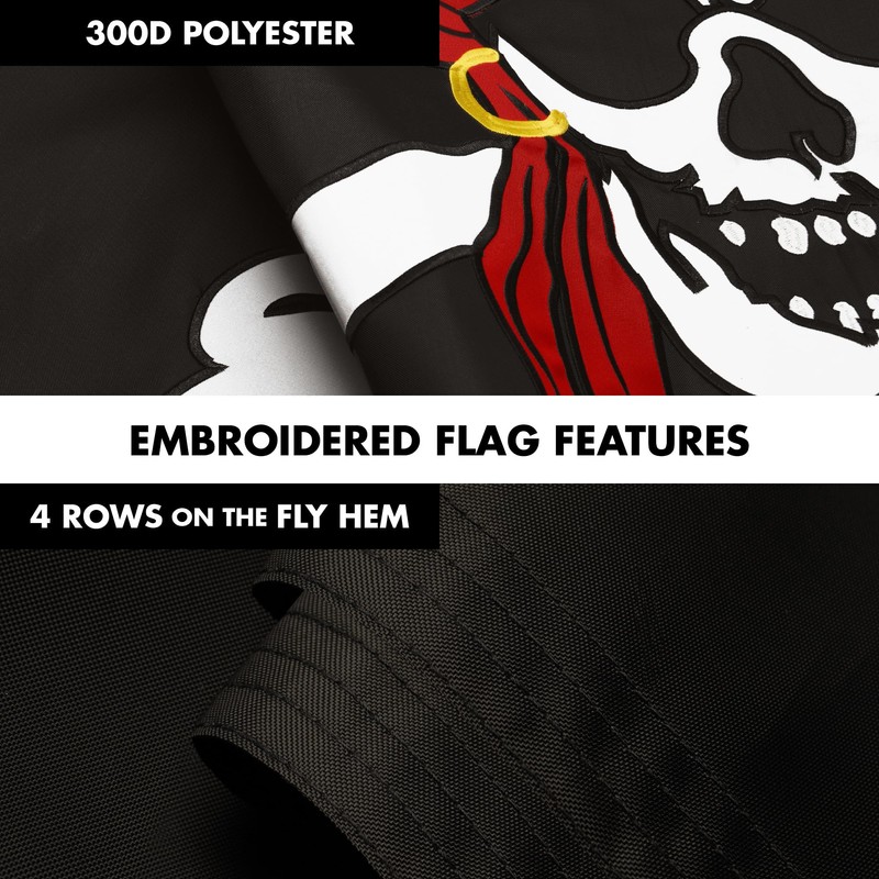 - DELUXE PACKAGE: G128 is including a 2.5x4 Ft, Embroidered, Pirate Jolly Roger Head Scarf flag with brass grommets for this deluxe flag and flagpole package!