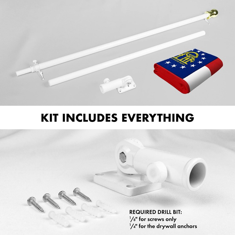 G128 Combo Pack: 5 Ft Aluminum Spinning Flagpole (White) & Georgia GA State Flag 2x3 Ft, StormFlyer Series Embroidered 220GSM Spun Polyester | Pole with Flag Included