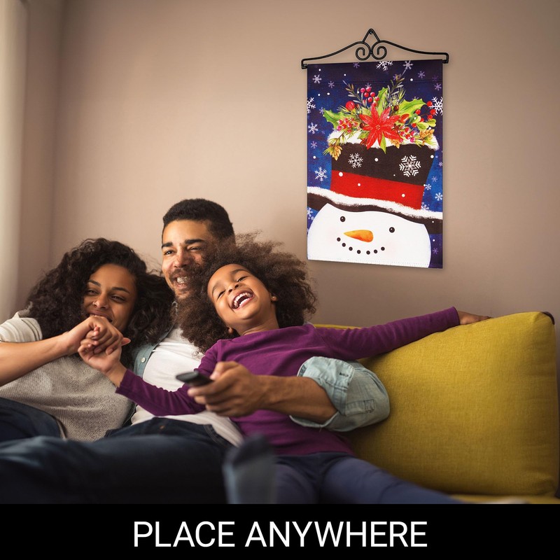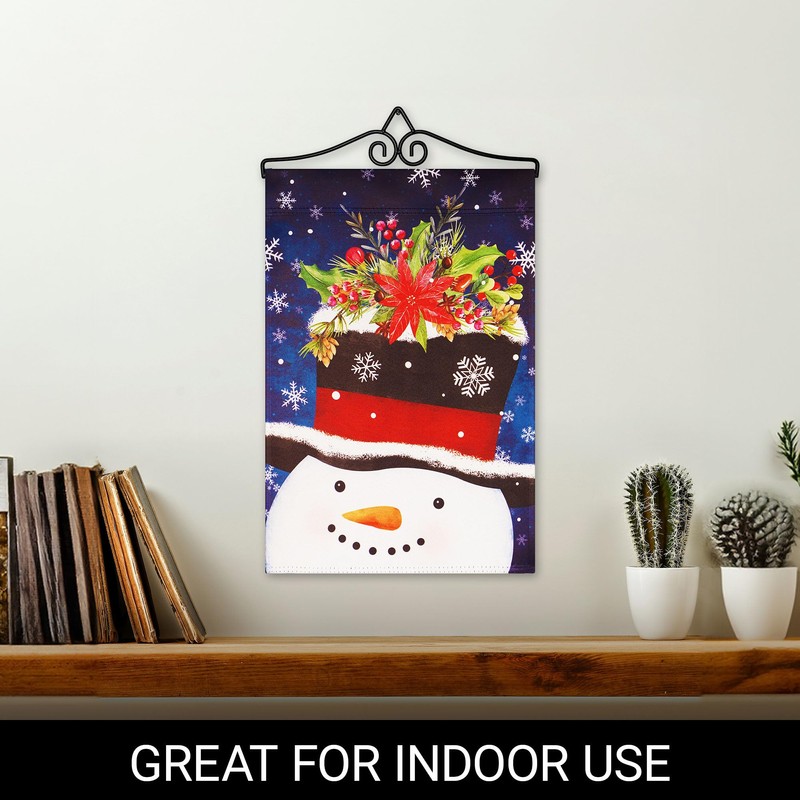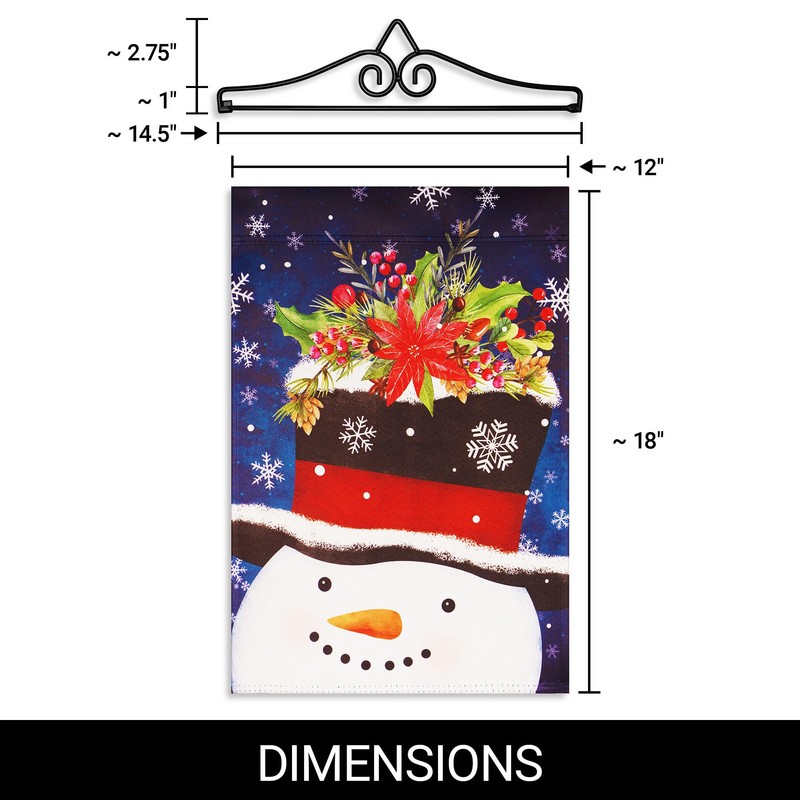 G128 Combo Pack Garden Flag Hanger 14IN & Garden Flag Snowman with Festive Evergreen Top Hat 12x18IN Printed Double Sided Blockout Fabric