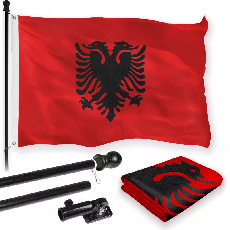 G128 Flag Pole 6FT Black & Albania Flag 3x5FT Combo Printed 150D Polyester