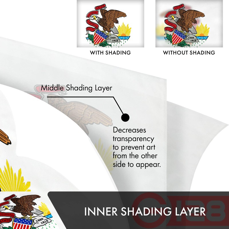 - Product: Embroidered Double Sided Illinois State Flag made from 210D Heavyweight Polyester *Beautifully embroidered design on both sides of the flag *3-Ply Double Sided flags feature two complete flags sewn together so images and wording read correctly on both sides *1 Piece of cloth in between so images are not obstructed from the reverse side