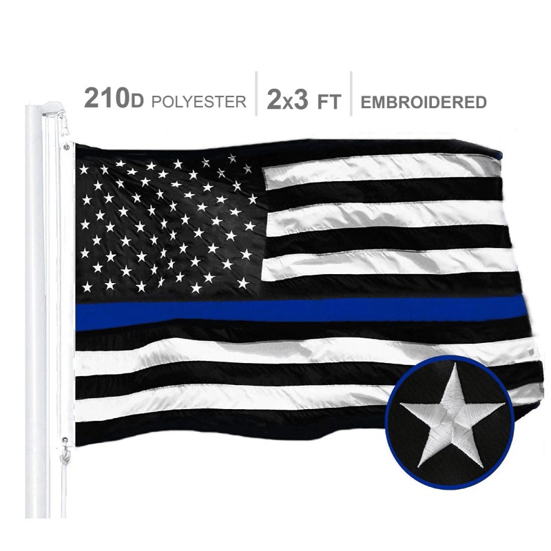 G128 Thin Blue Line Flag 210D Embroidered Polyester 2x3 Ft