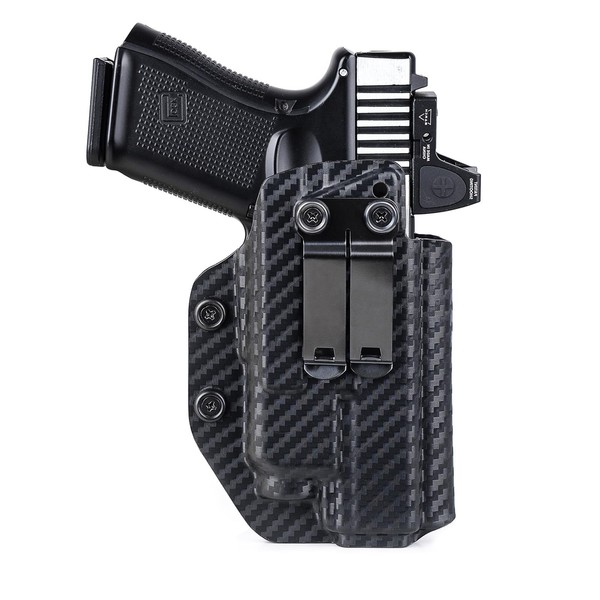 - TIGGER GUARD & "POSI-CLICK" DESIGN: The kydex trigger guard design provides complete coverage of the trigger effectively accidental finger insertion preventing any potential accidents. and you can hear ‘CLICK’ the gun lock into place when you insert to holster, indicating a firm lock-in.