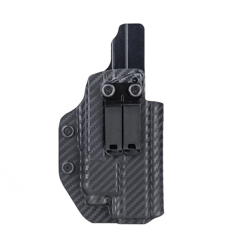 - TIGGER GUARD & "POSI-CLICK" DESIGN: The kydex trigger guard design provides complete coverage of the trigger effectively accidental finger insertion preventing any potential accidents. and you can hear ‘CLICK’ the gun lock into place when you insert to holster, indicating a firm lock-in.
