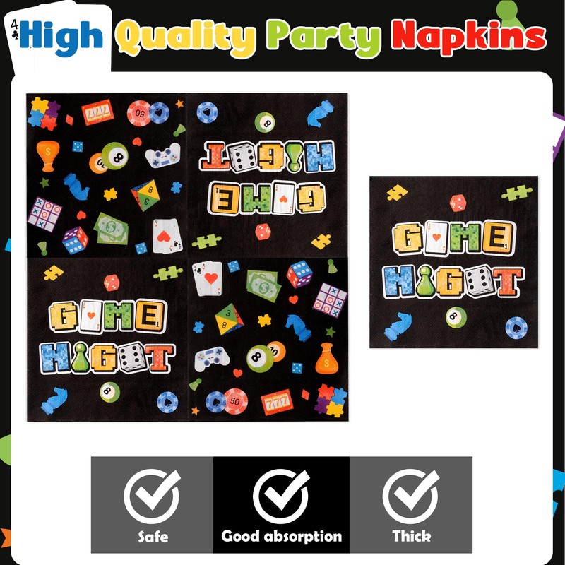 - WIDELY APPLICATIONS: Our family game night party tableware set can be used for various occasions. Such as game night theme party, video gaming party, game on party, birthday, baby shower and so on. And it's also a great supplies for picnics, which will leave a deep impression on everyone