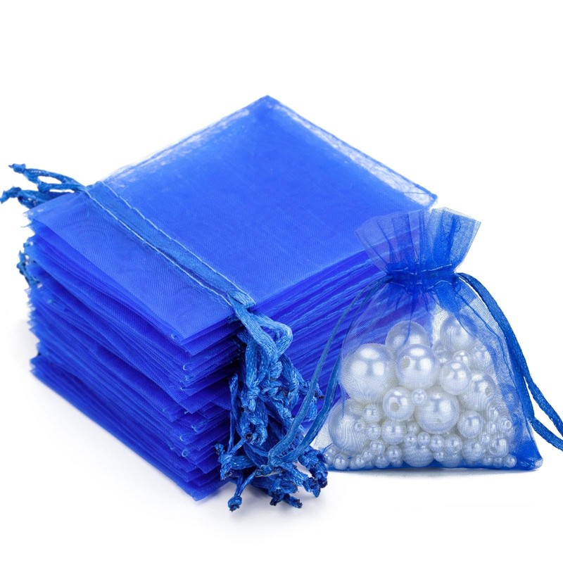 G2PLUS Blue Organza Gift Pouches, 7x9 CM Small Organza Favour Bags, 100 PCS Wedding Jewelry Bags, Clear Mesh Pouches Perfect for Wedding, Christmas, Birthday, Anniversary