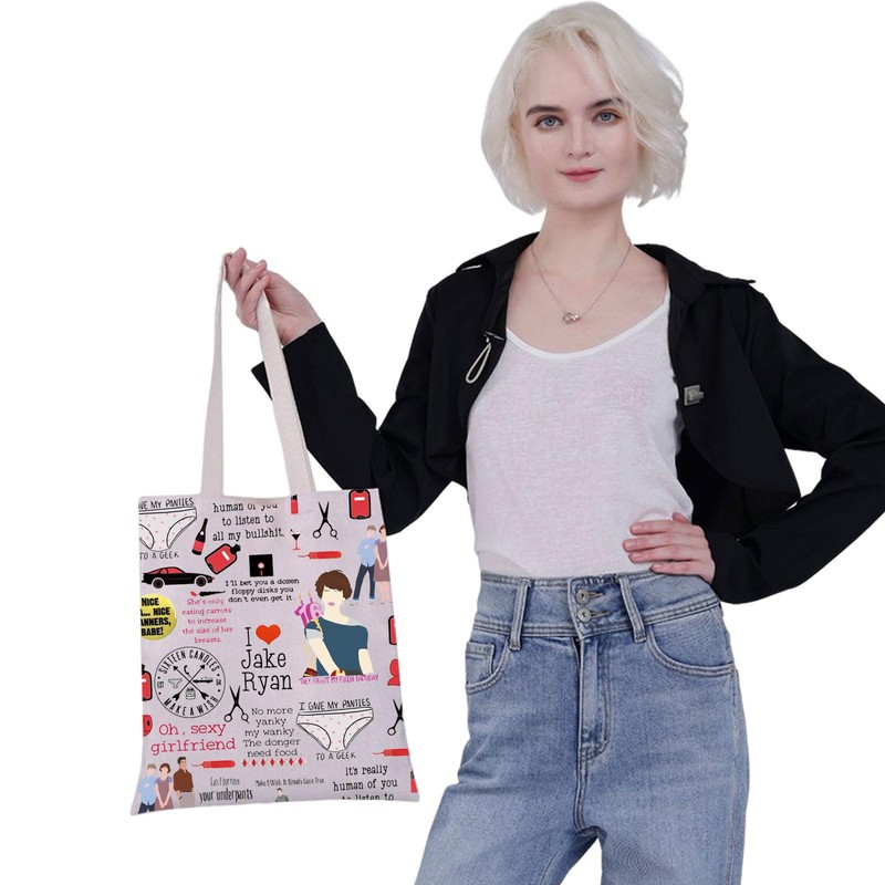 - ❤Features:Jake Ryan tote size 35 * 38cm (13.77 inches × 14.96 inches), cross stitched shoulder handles. It can hold many things, convenient for you to carry!