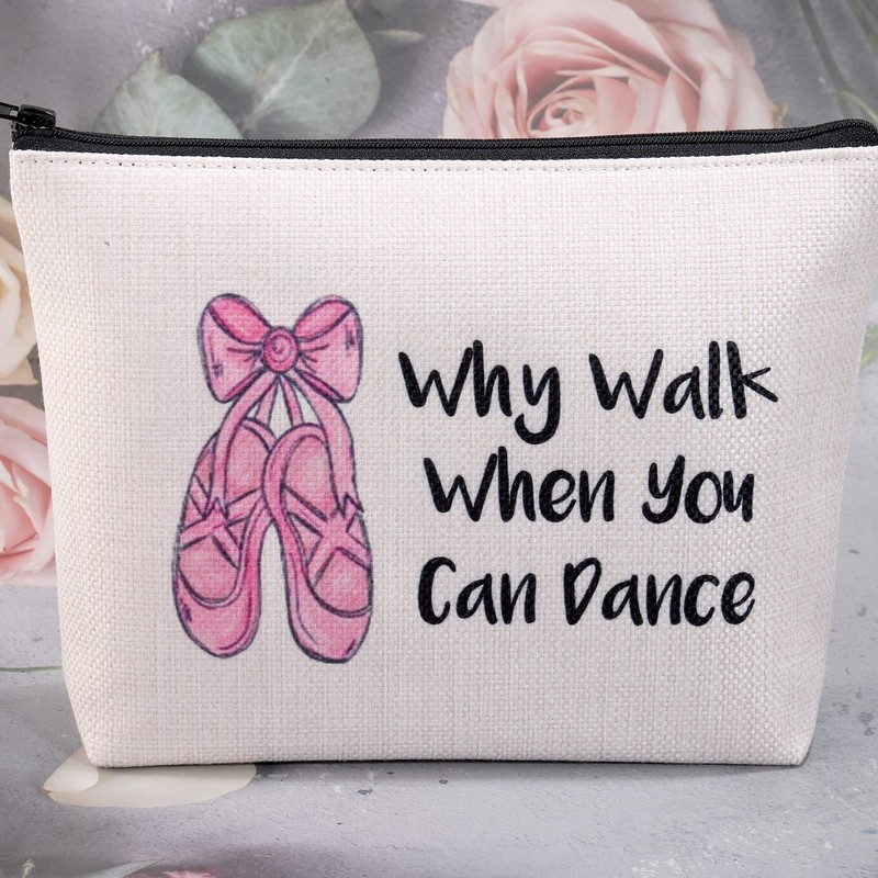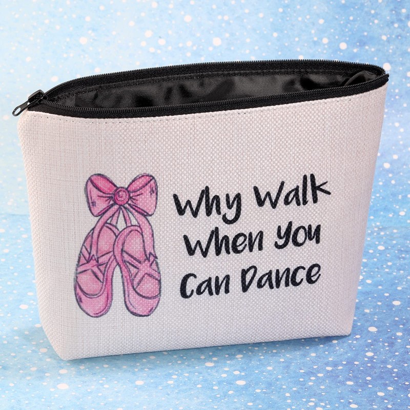 - ♡Esta bolsa de accesorios de gimnasia/bailarina/baile con mensaje de amor impreso "Why Walk When You Can Dance", el mejor regalo inspirador para ella.