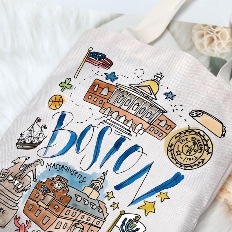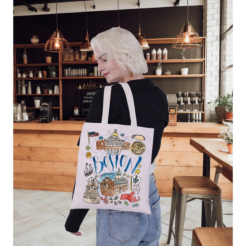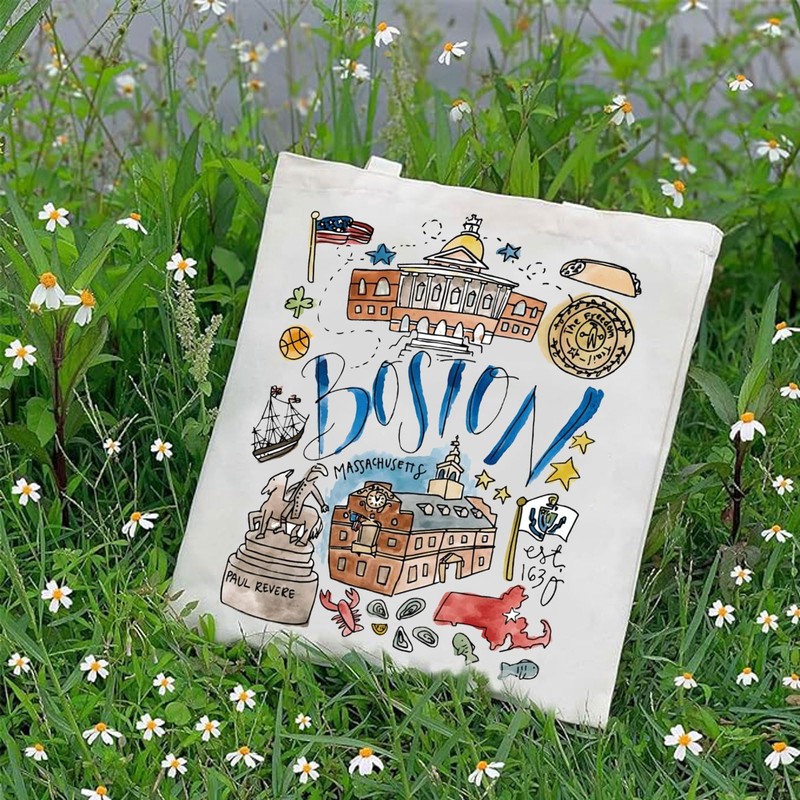 G2TUP Boston Massachusetts Travel Tote Bag Boston Travel Souvenir Gift Boston Landmarks Shoulder Bag Boston Merchandise (Boston TG)