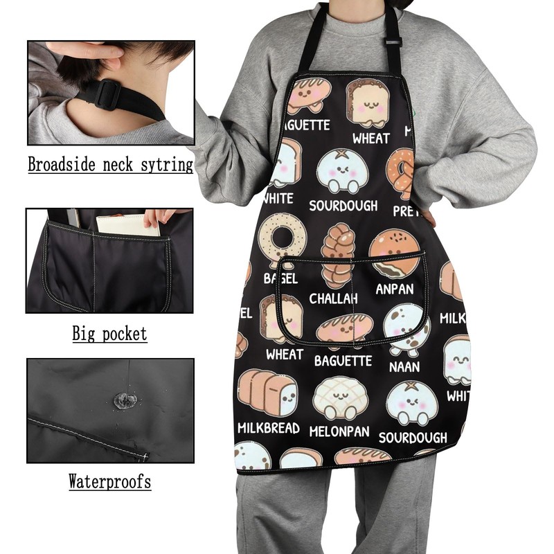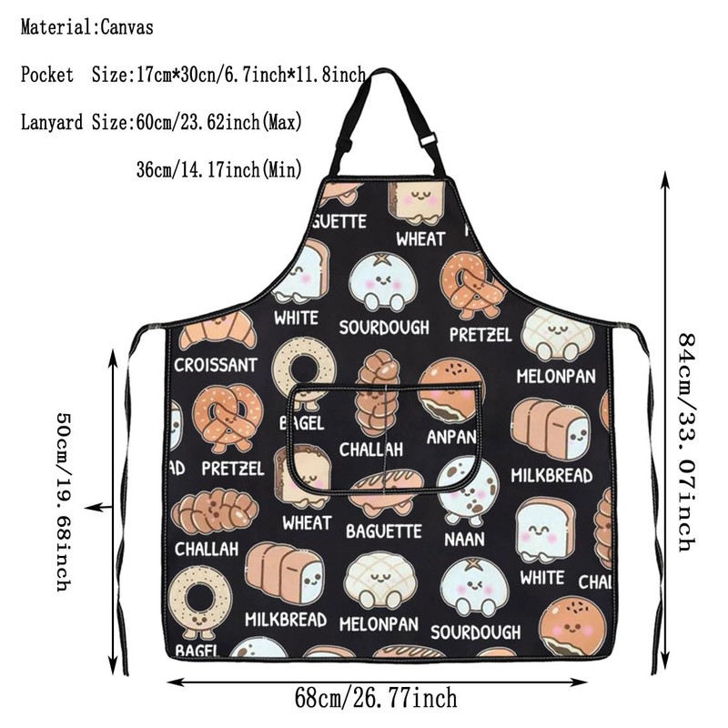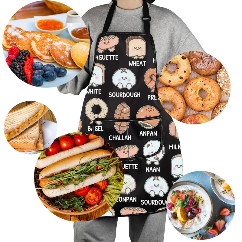 G2TUP Bread Lover Gift Cute Bread Design Apron With Pockets Love Bread Kitchen Gift Bread Baking Baker Apron (Cute Bread Design A)