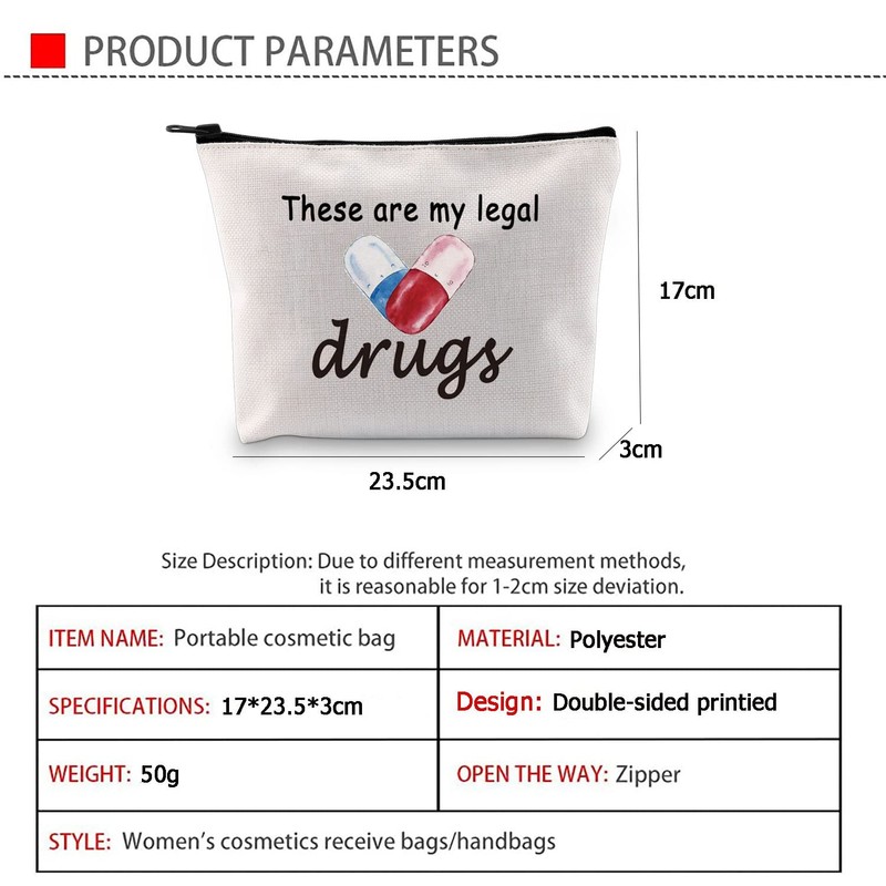 - Material: divertidas bolsas con cremallera para pastillas hechas de material de poliéster suave y bolsas de maquillaje impresas vívidas, también la superficie es impermeable de nuestra bolsa de cosméticos.