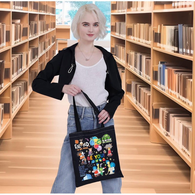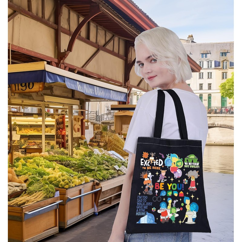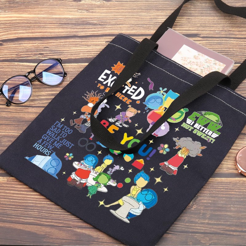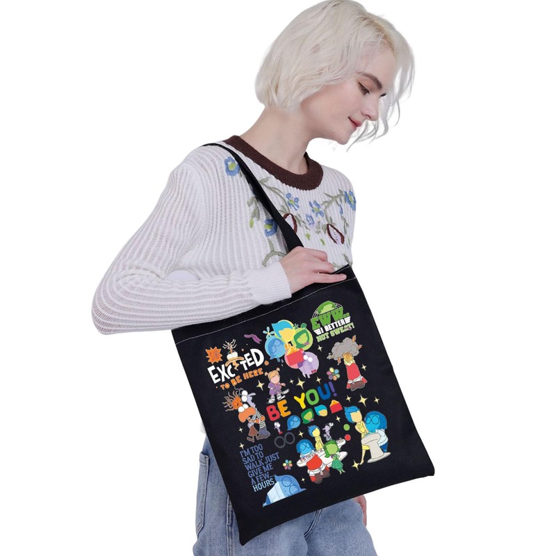 G2TUP Joy & Sadness & Fear Canvas Tote Bag Anger & Disgust Fans Gift I'm Too Sad To Walk Shoulder Bag Joy & Sadness Merch, I'm Too Sad Bl