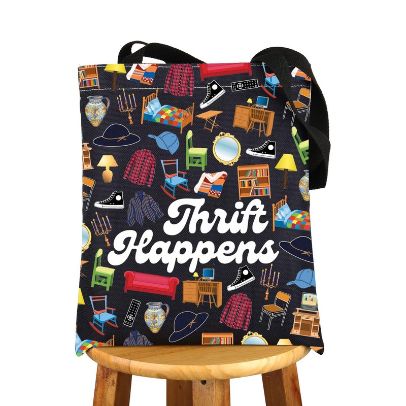 G2TUP Thrifting Tote Bag Thrift Store Lover Gifts Antiquing Enthusiast Gift Thrift Happens Thrifting Shopping Bag (Happens CA)