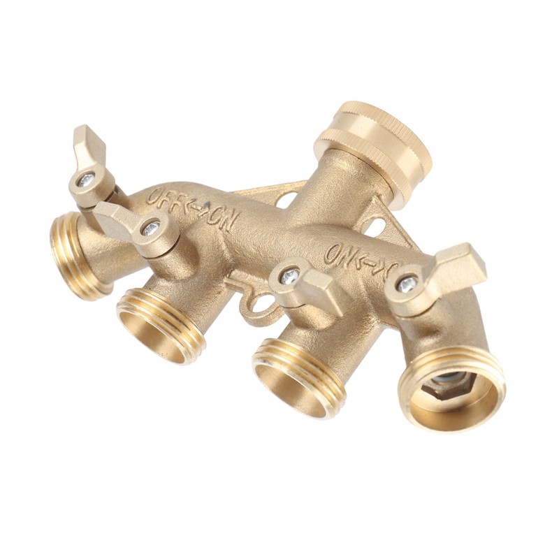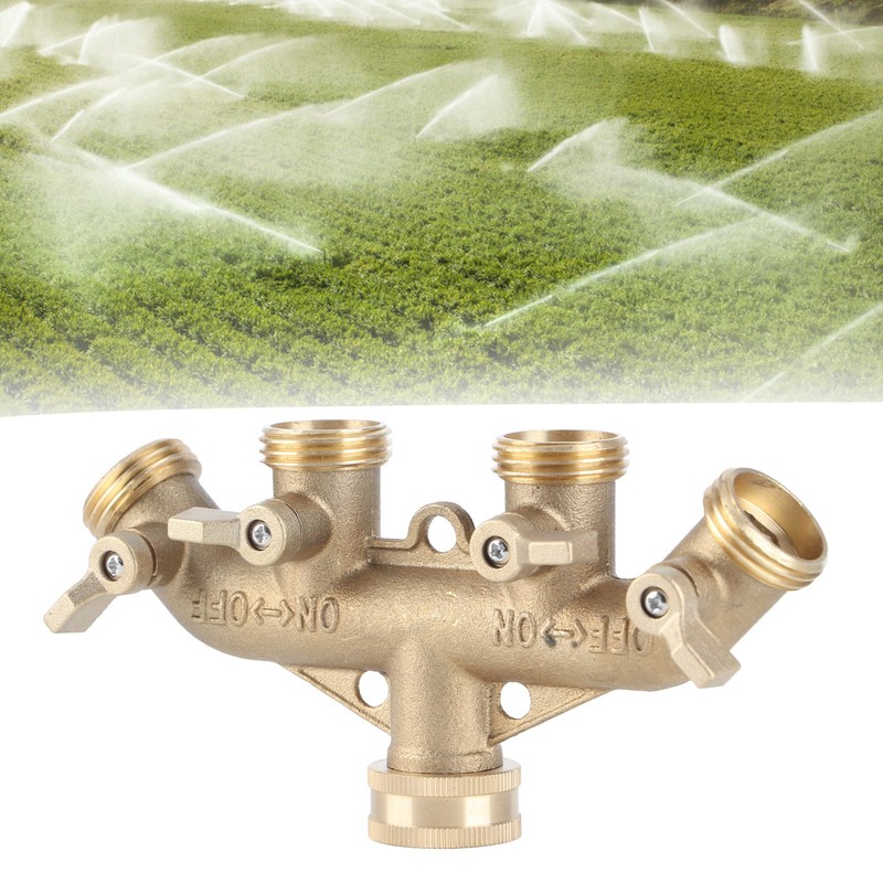 G3/4 Brass 4‑Way Garden Hose Splitter Ball Valve Hose Adapter Water Faucet Valve Connector