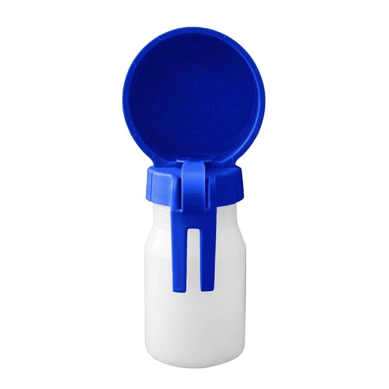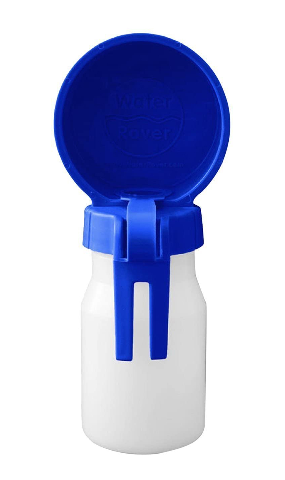 Water Rover Smaller 3.5-Inch Bowl and 8-Ounce Bottle – the ideal travel companion for keeping your pet refreshed on the go. Compact and spill-proof, this pet water bottle features an integrated bowl, making it perfect for shorter excursions with small pets. With a leak-proof cap and easy-to-use design, it's the hassle-free solution for quick hydration during walks or travel. Lightweight and durable, the Water Rover ensures your furry friend stays hydrated wherever your adventures take you. Water Rover makes it easy for pet owners to take water with them wherever they go. With its durable, lightweight plastic water bowl and attached bottle. Water Rover is simple to use. Just unplug the bottle, lay it flat, and the water will automatically flow into the round bowl. Tip the extra water back into the bottle, replace the plug, and clip the Water Rover back onto your belt or waistband.