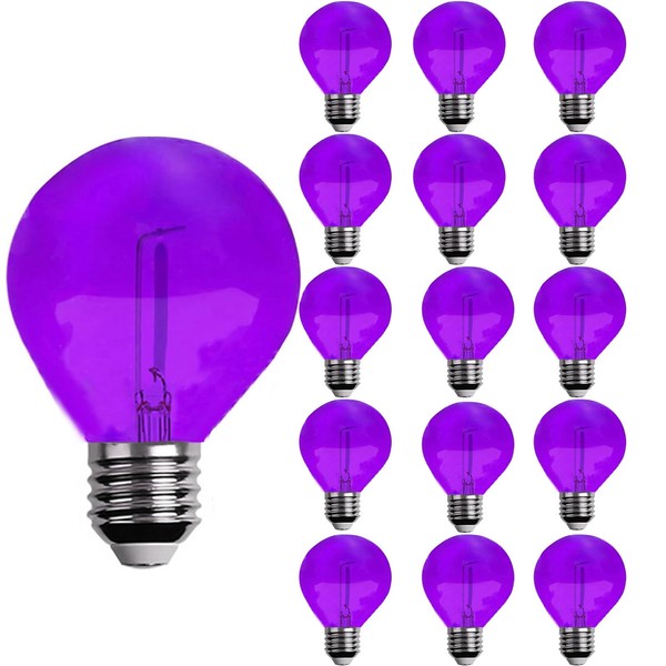 G40 Light Bulbs Replacement Purple 1W Shatterproof Plastic LED Globe Bulbs G40 LED String Lights Replacement Bulb E12/C7 Candelabra Base for Indoor Outdoor Patio String Lights,15 Pack(Purple)