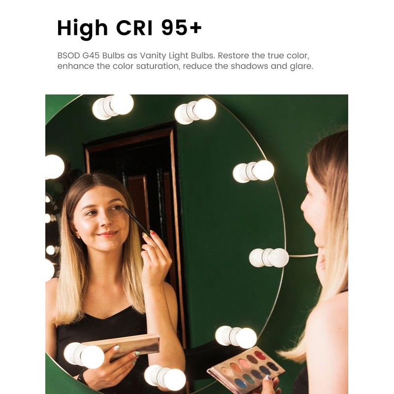 - BSOD G45 Daylight LED Bulbs: CRI>95, ensuring that colors are vividly and accurately represented. E26 base, 5W bulb equivalent brightness 40W traditional bulb, making energy-efficient. The globe light bulb has a 360° beam angle. This freezer bulb can operate within temperatures from -7°F to 149°F, making it suitable for Refrigerators, indoor, outdoor. IP44 Waterproof, the led light bulb can resist splashing water,such as Refrigerator, vanity, bathrooms, kitchens, or outdoors porches string lights. Moreover, the daylight led bulb offers a full-spectrum light, mimicking 6000K sunlight to create a comfortable and healthy lighting atmosphere. And No-Flicker, No-Heat Bulb