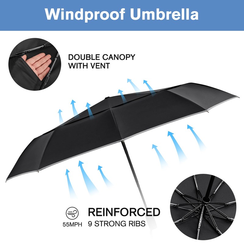 G4Free 42 Inch Windproof Travel Compact Umbrella for Rain & Sun, Double Canopy Umbrella with Reflective Strip, Automatic Open & Close Folding Umbrella with Cover Bag for Women Men(Black)