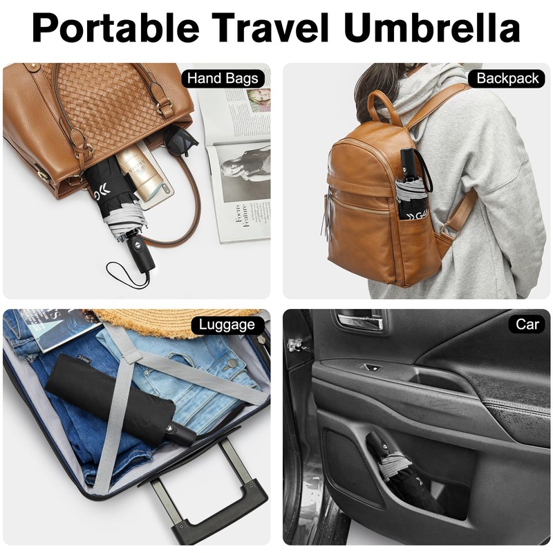 - 【Easy one-handed use, Small & Portable】With the push of a button, you can automatically open or close your G4Free umbrella. It can provide a huge coverage of 42 inches, is only 11 by 2.75 inches in size, and weighs less than 1 lb. The portable umbrella fits perfectly in your backpack, purse, or car door. You can take the compact umbrella with you wherever you go.