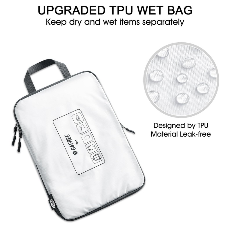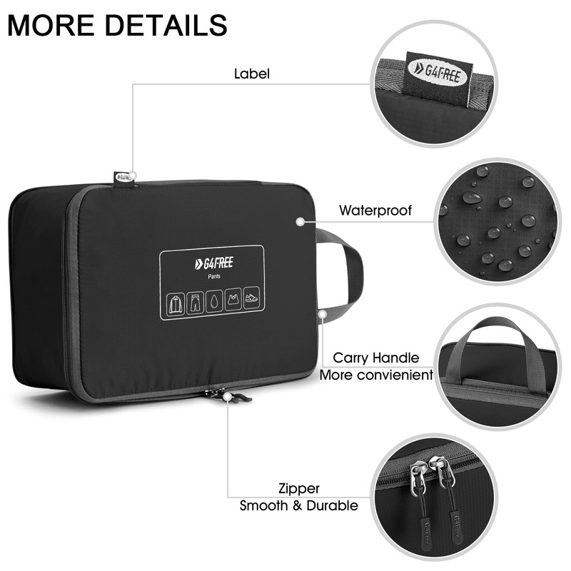 - Real space saver: The G4Free 6-pack travel organiser is equipped with double zippers that can effectively compress your clothes and maximise luggage storage capacity. Say goodbye to bulky packaging. These professional compression packaging cubes help reduce wrinkles and clutter and provide more space for your items.
